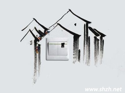 通過(guò)幾筆就將古代民屋融入開關(guān)之上,把開光當(dāng)作了屋子的窗口,打開了開關(guān)如同打開了窗戶。