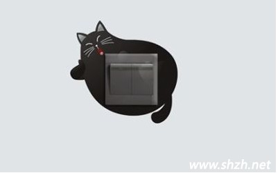 調(diào)皮貪吃的大黑貓把開關(guān)吃到肚子里面去了,我想這么可愛的圖案放在黑色系的室內(nèi)也會(huì)讓人眼前一亮吧。