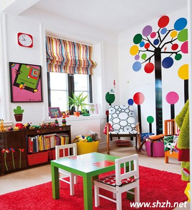 大紅色的大地毯被放置在七彩繽紛的兒童房,與房間的色彩氛圍正好相融,在如此鮮艷的氛圍中,能開發(fā)孩子的想象空間,提高孩子的學(xué)習(xí)能力。