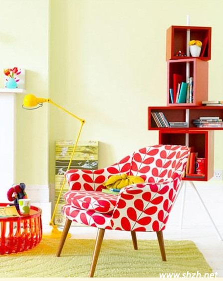書房的一角家具統(tǒng)一采用紅色系,陽(yáng)光向上,充滿生機(jī)。地毯卻選擇了和墻壁一個(gè)色系的鵝黃色,讓這一處明媚清爽。而紅黃的搭配,讓書房的溫度直線上升。