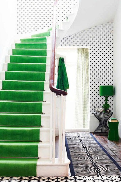 看完淺色系地毯的簡約時尚,再讓你感受鮮艷的純色系帶來的視覺感受。綠色的樓梯地毯瀑布傾盆而下,加上室內(nèi)的綠色裝飾搭配,滿屋子的綠色讓人身輕氣爽,呈現(xiàn)出一種別樣的浪漫。