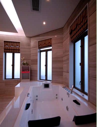 值得一提是泳池,設(shè)計(jì)時(shí)考慮到日后小孩在泳池邊行走或玩耍,即使有大人看管也難免有不慎的時(shí)候,為確保萬無一失,預(yù)防落水事故,杜絕安全隱患,于是在泳池周邊的排水溝內(nèi)設(shè)置了相應(yīng)數(shù)量栓綁安全網(wǎng)的不銹鋼鉤子,隱藏在石板蓋下,有活動(dòng)的半園小石蓋板,在不使用的季節(jié)或平時(shí),將安全網(wǎng)分段覆蓋;