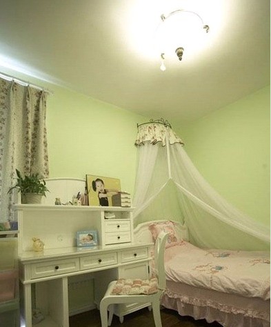 兒童房沿襲了美式風(fēng)格的基調(diào),但墻壁改成了綠色,更顯活潑。綠色體現(xiàn)出了童真與童趣!