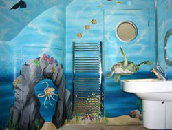 沐浴的時間也可以是如此的快樂,孩子現(xiàn)在能和海豚游泳、和美人魚嬉戲,而且在有主題的壁畫中到處濺濕。