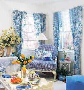 淡藍風格的小碎花布藝加上自然材質(zhì)的裝飾再加上印有淡藍花色的茶杯。 家居里彌漫著優(yōu)雅的鄉(xiāng)村田園風格。淡淡藍白碎格子沙發(fā)透著鄉(xiāng)村風格的樸素,田園風格的木質(zhì)茶幾,窗簾上那些淡藍色的碎花紋猶如手工描繪般細致。