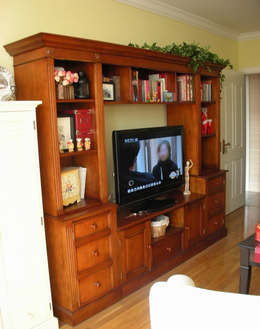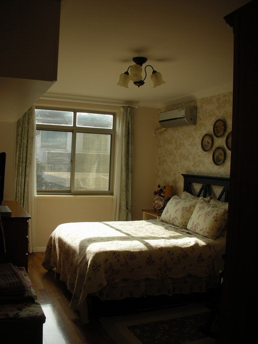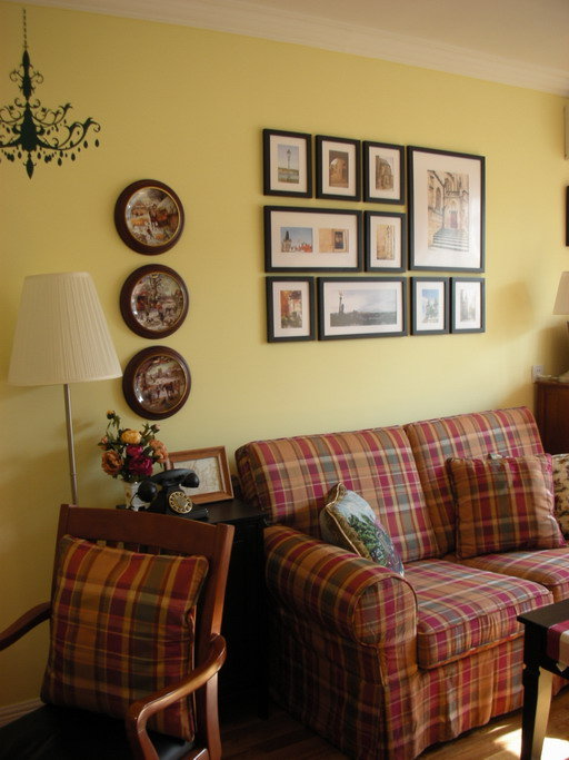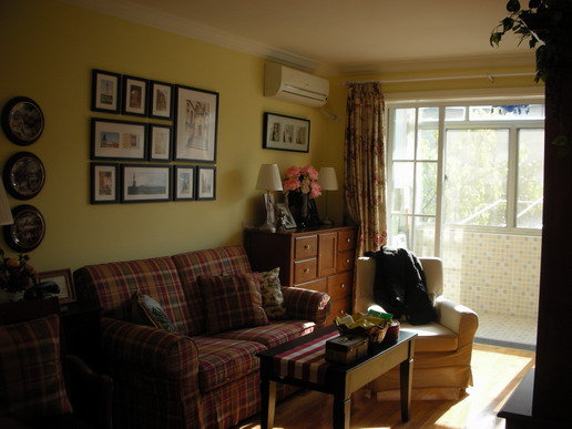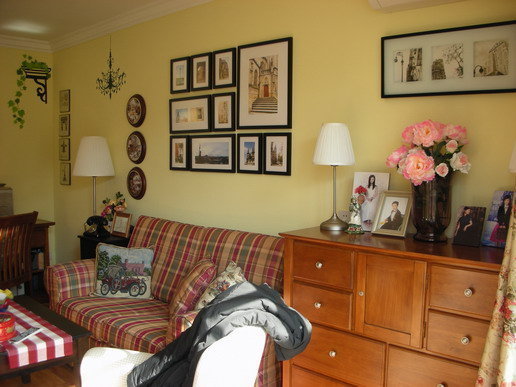 上圖為入住一年后拍的,家具已經(jīng)全部進(jìn)場(chǎng),原先單一的米黃色墻面在這些老紅木家具的襯托下更顯溫馨。
