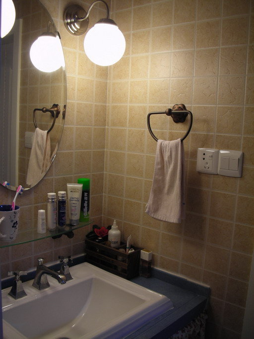 衛(wèi)生間以復(fù)古磚為主,與家居整體協(xié)調(diào)。