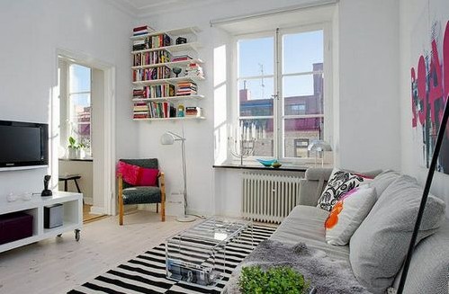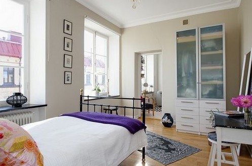 整個空間都是以白色作為主色調(diào),干凈明了,搭配些色彩明快的軟飾在里面,頓時“生氣”了幾分。
