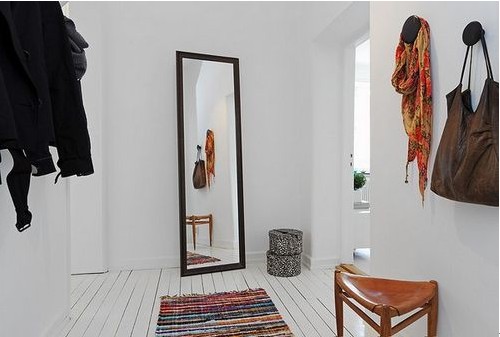 簡單的一個衣鏡,點綴了白色的墻面,隨性的設計,可以看出業(yè)主是個不受約束的人。