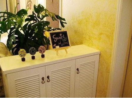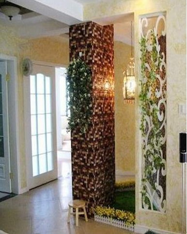 位于客廳過道中的小小花園,開門就能看到,原來是一根大柱子,開門就能看到它傻愣愣的站在那,很不爽,把周圍改裝了一下,搞成一個小花園,中間掛了只鐵藝類似鳥籠燈~ 燈和花花草草也是網(wǎng)上淘來的
