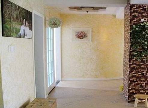 通往臥室的弧形過道,墻上掛的十字繡是同事幫忙的,我實(shí)在沒信心繡了