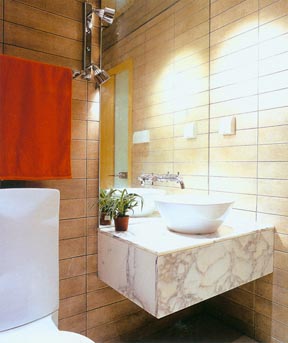 洗面盆可選擇臺式盆或底盆,1.2米X 0.6米的洗手臺對于4平方米的空間來說,就已經(jīng)足夠了。鏡子當(dāng)然是越大越好,因為它可充分?jǐn)U大小浴室的視覺效果,但從其容易清潔及美觀的角度來看,一般設(shè)計成與洗手臺同寬即可。另外,也可直接在衛(wèi)浴的一角安裝角形洗面盆或柱式洗面盆,這樣能使衛(wèi)浴間有更多的回旋余地。