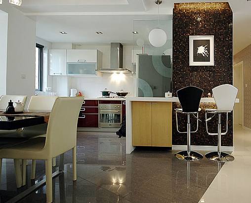 提醒:玻璃墻的不足之處是不能像輕體墻一樣在上面掛些東西,只能做隔斷和裝飾用,但在通透感上比輕體墻要好很多。但玻璃需要經(jīng)常清理,否則因油煙較大,時間長了污物積累在一起不好清洗。如果玻璃墻的面積過大,清洗起來會更加麻煩。