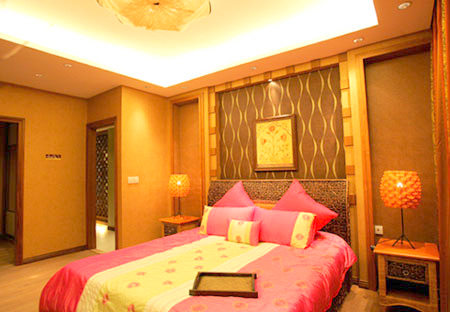 臥室淡粉色的床充滿(mǎn)著妖滴滴的味道,充滿(mǎn)女人味的柔媚色彩。