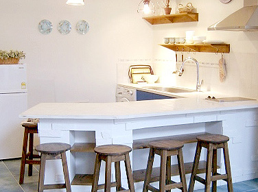 此外,吧臺或上下吊柜也都具有收納功能,一般吧臺可兼做早餐臺,高度以85公分最佳,用一般座椅即可,此吧臺還可當(dāng)工作臺使用;超過100公分的吧臺,就需要使用高腳凳,不過,收納功能相對較強(qiáng);吊柜也可做成有門片的雙面式或?qū)影迨?,可收納雜物,層板可放餐杯或咖啡杯、酒杯等裝飾性的餐具。