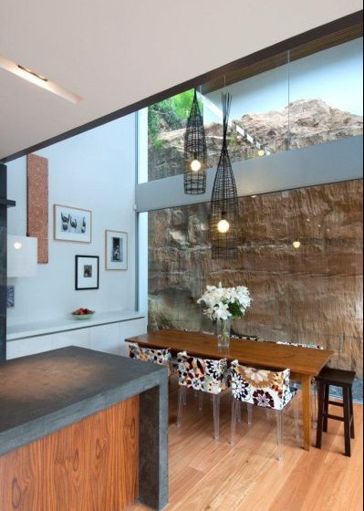 在群山翡翠中擁有一幢別墅是很多人一生為之奮斗的目標(biāo)。從公寓房到別墅這個(gè)別墅人們對(duì)于居住空間的要求越來越高,都市里的高樓林立哪有山間別墅自然享受。遠(yuǎn)離鋼筋混凝土的氣息,擁抱自然那是最為理想的居住場(chǎng)所。我們一起來走進(jìn)這一幢山間別墅。別墅里的每一個(gè)房間布置圍繞著內(nèi)庭院展開,而在庭院內(nèi)部則有著原生態(tài)的植被和巖壁。 我們隨眼可見的巨大的玻璃推拉門設(shè)置于主要的起居室區(qū)域,這樣又能使得內(nèi)外空間流動(dòng)起來。 對(duì)于主臥室這個(gè)位于巖壁的最高位置,則是作為雙親父母的房間,這里有著最好的觀景方位,亦體現(xiàn)著對(duì)父母的濃濃親情。