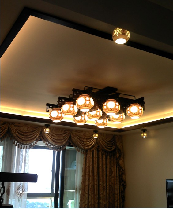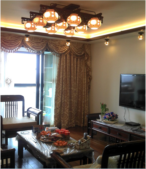 中式的吊燈仿佛是燈籠又仿佛黑夜的星星給人希望給人憧憬,燈籠是中國的傳統(tǒng)文化這又與中國古典風(fēng)格相呼應(yīng)!在加上吊頂?shù)哪揪€條收邊,以及裝飾很強(qiáng)的燈籠式的筒燈都在演繹著中國的傳統(tǒng)文化的高雅,中國古典風(fēng)格的不顯奢華的情調(diào)!