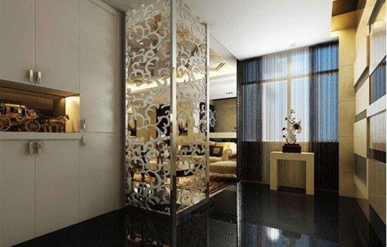 玄關(guān)之處,我們的視線從錯(cuò)落有致的裝飾墻很好的引伸到遠(yuǎn)處一趣味不凡的端景之后,再牽引了我們的視線到漏格處。依然萃取了古典風(fēng)格的張力,運(yùn)用漏格雕花完美呈現(xiàn)玄關(guān)與客廳的過渡,展現(xiàn)了玄關(guān)立體與無盡的視覺感。
