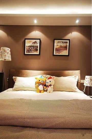 主臥的空間相當(dāng)理想,沒有做太多的累贅裝飾,一切皆以簡(jiǎn)約為主。淡淡咖啡色背景墻,在燈光的引導(dǎo)下浪漫氣氛十足。