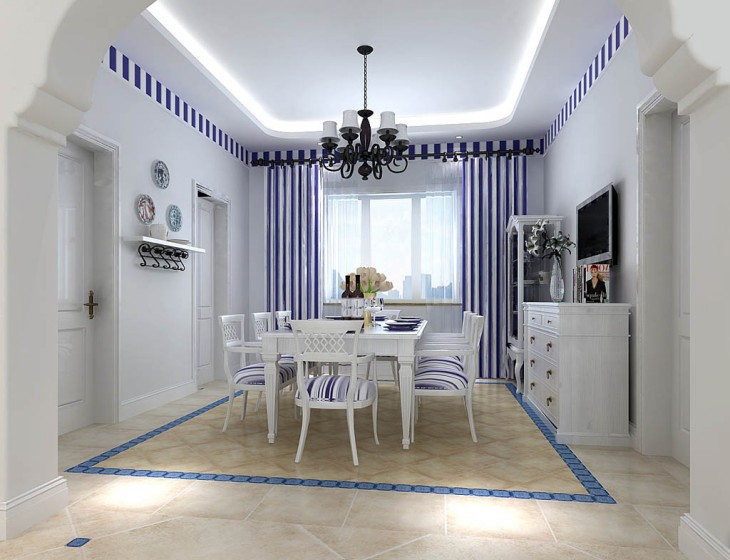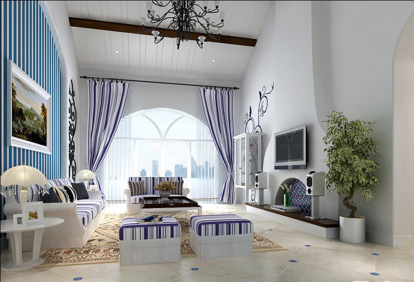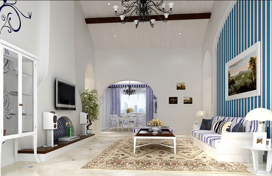 拱形的設(shè)計使地中海的情調(diào)貫穿家居始終,其純美的色彩組合。就像親臨地中海,藍(lán)白的干凈使生活變得簡單而自如。