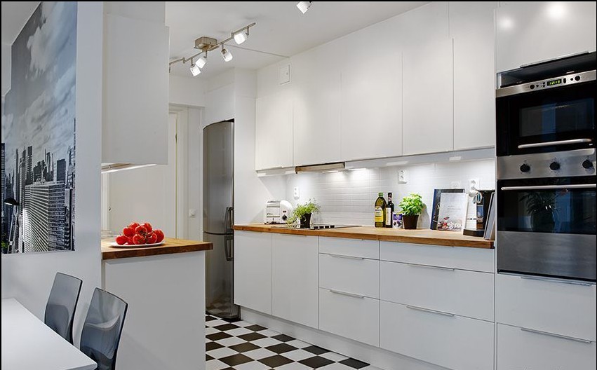 直接線的櫥柜線條,顯示了空間的簡約性。拼接瓷磚又能給空間加分。