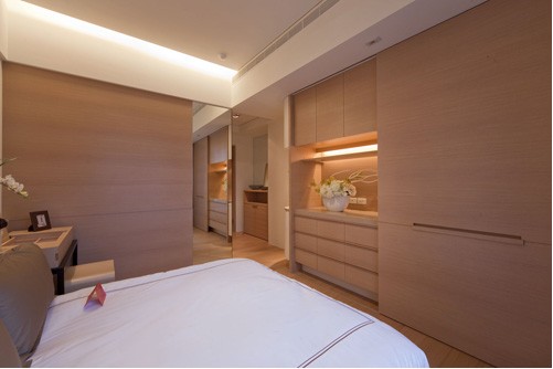 這間臥室的衣柜采用的是橡木飾面板,臥室的墻面采用的是與橡木板相似的防火板。由于記間大面積都是橡木色,由于臥室的空間不是很大,做了衣柜及柜子,床背景就沒有做了。臥室地面采用的是木地板。讓人一進(jìn)臥室就感覺很溫馨的家,臥室是自己每天在家呆得到最長(zhǎng)的地方,每天睡覺的地方,所以是最私密的。強(qiáng)調(diào)居家的實(shí)用性和舒適性,加上燈光的配合給整個(gè)空間營(yíng)造出浪漫的氣氛。