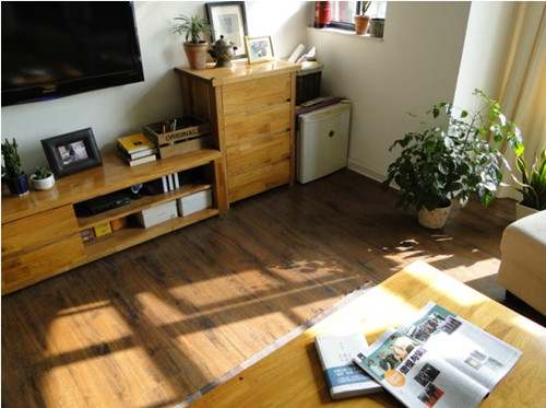 男人的空間里線條都會有硬朗的感覺,原木色的實木茶幾、電視柜就是最好的寫意。同時,男人也可以很居家,如同客廳里那些綠意盆栽。