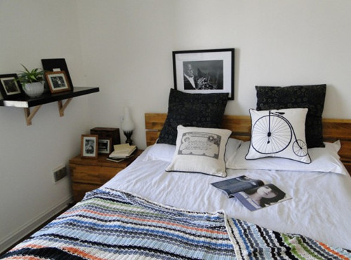 年輕男人的臥室可以很動感,如同那條七彩條紋的床單。