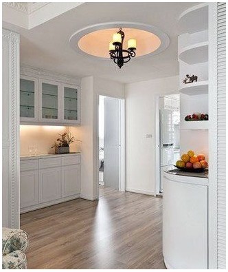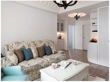 頂角的花紋白色石膏線和歐式小白桌,搭配上帶鄉(xiāng)村氣息的碎花沙發(fā),一種恬淡陶然的田園情懷再現(xiàn)精致浪漫的都市品質(zhì)。
