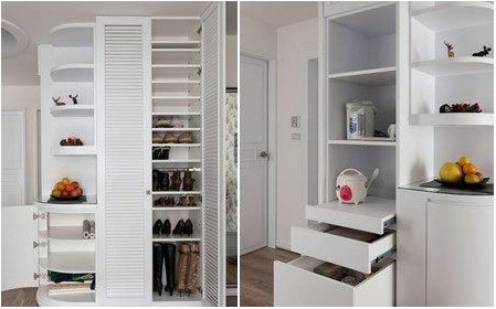 進(jìn)門白色調(diào)的多功能鞋柜,在房間里顯得美觀又具有強(qiáng)大的收納功能,白與原木的地板搭配,讓溫暖的情調(diào),送進(jìn)居室的角角落落,很有一種怡人的感覺。