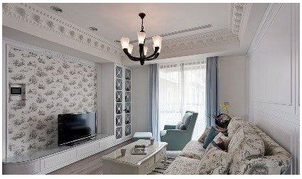 客廳碎花的背景墻壁紙,歐式田園的吊燈,茶幾,沙發(fā)交相輝映,處處體現(xiàn)大自然的濃濃氣息。