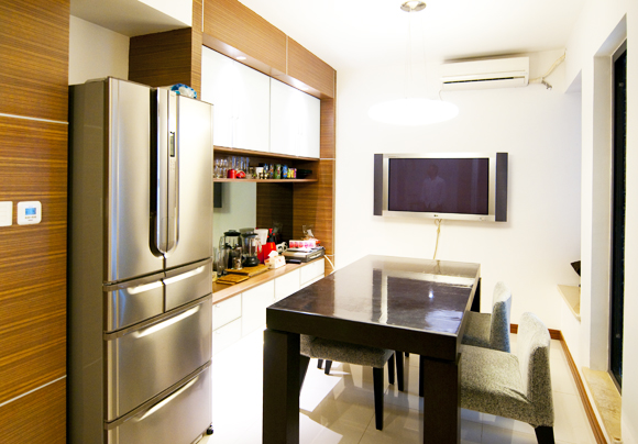 餐廚空間共有,不想改變其它空間,所以盡量將廚房空間利用出來(lái),餐廚共有。