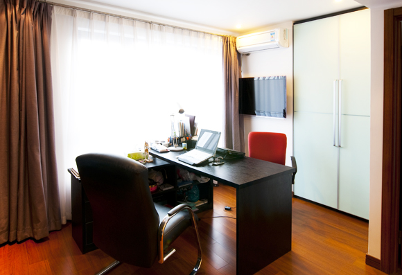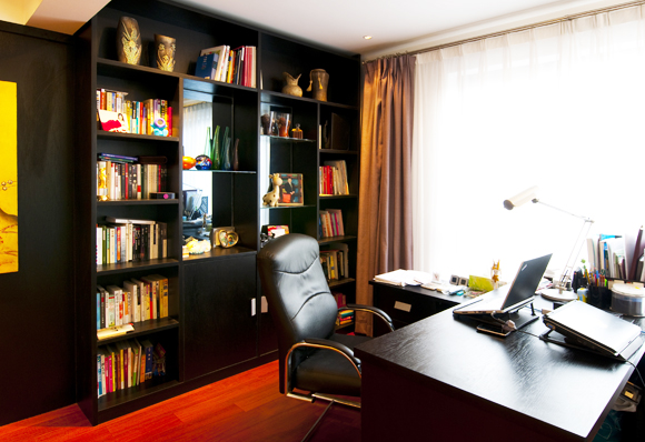書(shū)房里的色彩是黑色系的,穩(wěn)重,低調(diào),正適合書(shū)房用途