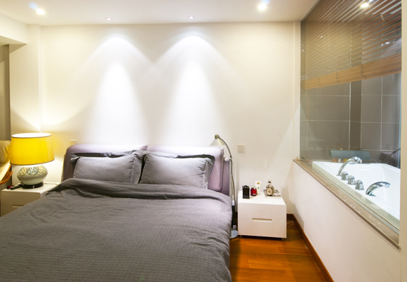 主臥里的衛(wèi)生間空間足夠,所以安裝著浴缸,盡量讓生活更舒適些。