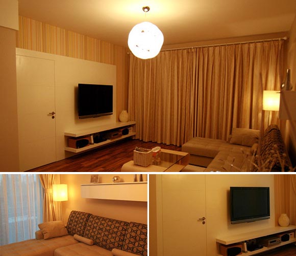 概要: 本套案例是孝順的兒子為父母準(zhǔn)備的房子,因?yàn)樽约汗ぷ鏖L期出差所以房子的主色調(diào)都父母喜歡的為主。父母亦是剛剛步入中年,家居色彩及設(shè)計(jì)上都是以現(xiàn)代的手法操作。這套90平的房子,處處都顯得溫馨?! 纳{(diào)上看,這是一個(gè)溫馨無比的家。走進(jìn)客廳里,客廳的右手邊是一寬大的落地窗設(shè)計(jì),與天花板同高的米色條紋色窗簾,與客廳的基調(diào)非常的搭配。