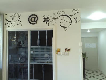 小小的純白空間里還有墻繪藝術呢,黑色的墻繪使得白色的墻壁不那么單調,有個性。
