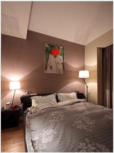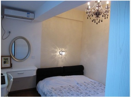 這個臥室挺小的,但設(shè)計師巧妙的利用了空間,這么小的空間就只能選擇小點的床啦!空間里白色與米色的墻壁有了對比,這樣顯得空間有了層次感,不會太單調(diào)??创差^的設(shè)計,很完美,還有水晶燈。小小的臥室簡約時尚美呆了!