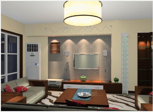 電視造型墻面,設計師很好的利用了原來的過梁,加以簡單造型,配上淺灰的壁紙,豹紋地毯的顏色與木質的家具相匹配,讓空間更加豐富!