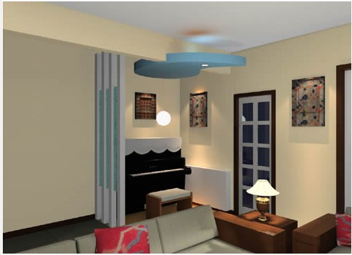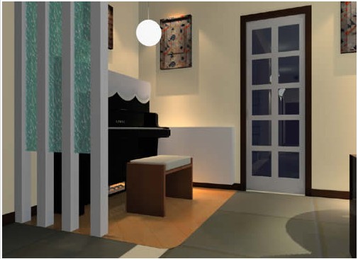 客廳的一角,設計師巧妙地改造成了鋼琴區(qū),梁上一格逗號特別的造型,呵呵 還挺有藝術感!