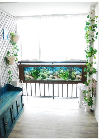 一進(jìn)門就看到水族館,這可歪打正著,家長們說玄關(guān)放魚缸可招財哦!呵呵 好溫馨!