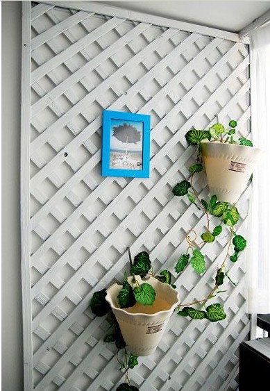 這塊玄關(guān)背景墻原來是防腐木色的,經(jīng)過設(shè)計的手把它噴上了白漆,這樣與玄關(guān)背景就很匹配啦,再用花架來填補單調(diào)的空白處。