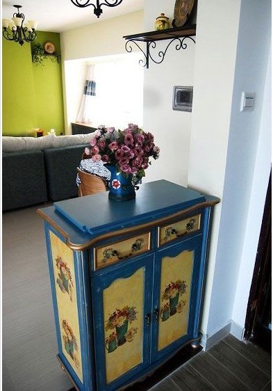 藍(lán)色的沙發(fā)、藍(lán)色的鞋柜、藍(lán)色的小碎花桌布地中海風(fēng)格盡顯眼前!