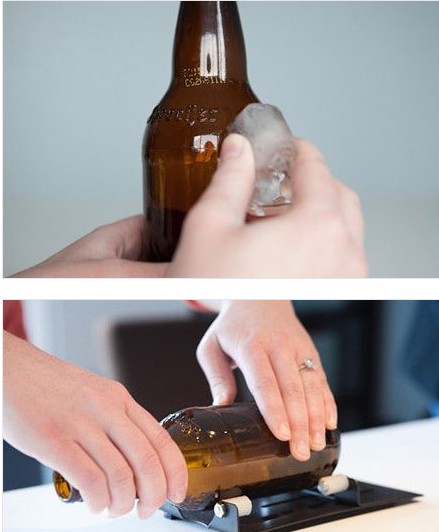光看怎么能行呢,自己學(xué)會(huì)怎么制作,利用在自己的居室才是真的好!其實(shí)制作方法很簡(jiǎn)單,用玻璃刀在酒瓶上劃一圈。