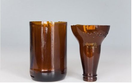 然后三是用火加熱瓶子,最后用冰領(lǐng)冷卻,借助熱脹冷縮使玻璃沿著第二步驟的裂口裂開(kāi),然后把不平整的瓶邊用砂子磨平。一個(gè)酒瓶花器就做好了!