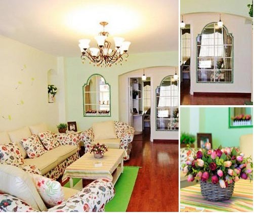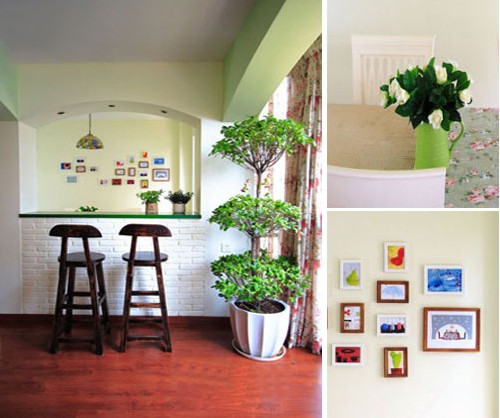 客廳處處點(diǎn)綴著淡淡的綠色,清新淡雅。油亮的實(shí)木地板,清新的沙發(fā)靠枕,鮮活的小花,使得整個(gè)客廳充滿(mǎn)新鮮與靚麗。