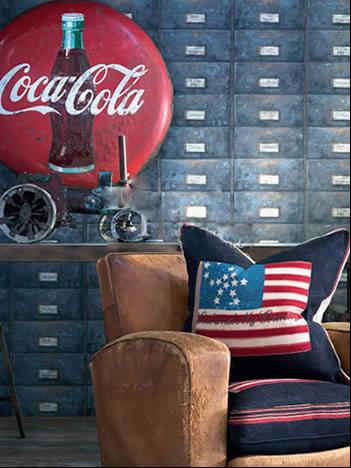 在美式風(fēng)格中,懷舊復(fù)古風(fēng)可以演繹的很完美。美國國旗的圖案一直是經(jīng)久不衰的,搭配在做就的棕色沙發(fā)上,讓人聯(lián)想到西部牛仔的英雄時代。在懷舊風(fēng)大行其道的當(dāng)今,沙發(fā)、休閑椅上的一個靠墊,可以在不經(jīng)意間讓懷舊復(fù)古的意味駐留在家中。
