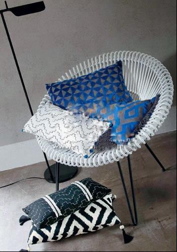 將質(zhì)樸的色彩折疊在一起,沒有任何距離性,能將整個休閑區(qū)點(diǎn)綴得可愛活潑。無需復(fù)雜的家具和配飾,僅需一把簡單的藤質(zhì)座椅和一盞折疊落地?zé)?,一個清新的休閑環(huán)境就此形成。簡潔的花紋、質(zhì)樸的顏色和舒適的材質(zhì),讓靠墊很完美的與整體家居環(huán)境融為一體。