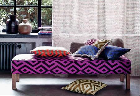 獨(dú)特的名族視覺圖案,讓“家”充滿了新意,充滿了瞎想和意境。將具有民族特色的靠墊放置于家居環(huán)境中,是提亮裝飾效果的好手段。在室內(nèi)總的色調(diào)比較單一的時候,可選用色彩斑斕的名族風(fēng)的靠墊來活躍空間的氣氛。