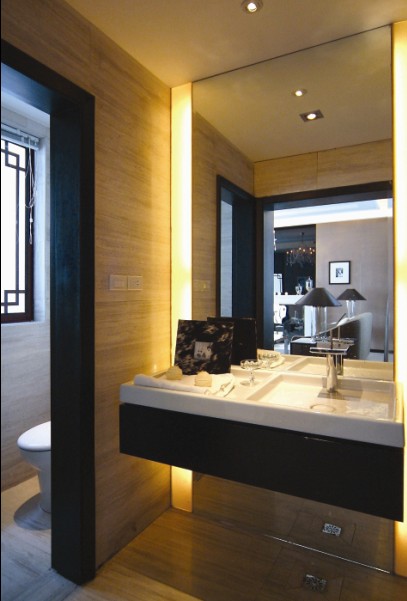 二樓的衛(wèi)生間,延用二樓客廳的咖啡色調(diào)。少去了黑白調(diào)的清冷,多了一點溫馨。
