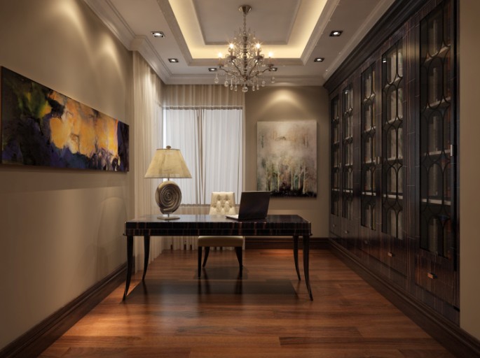 大氣簡(jiǎn)約的書(shū)房,最為實(shí)用的收納書(shū)柜正好是一面墻壁。